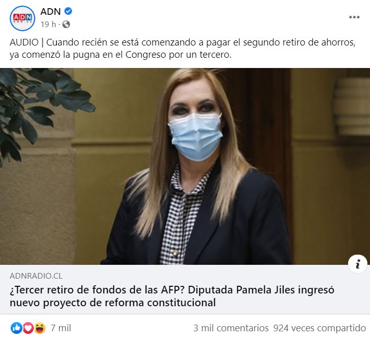 • El principal eje temático es la propuesta de un tercer retiro del 10% presentada por el equipo de la diputada Pamela Jiles. Varios políticos han expresado su rechazo a esta propuesta, aumentando el volumen de conversación.