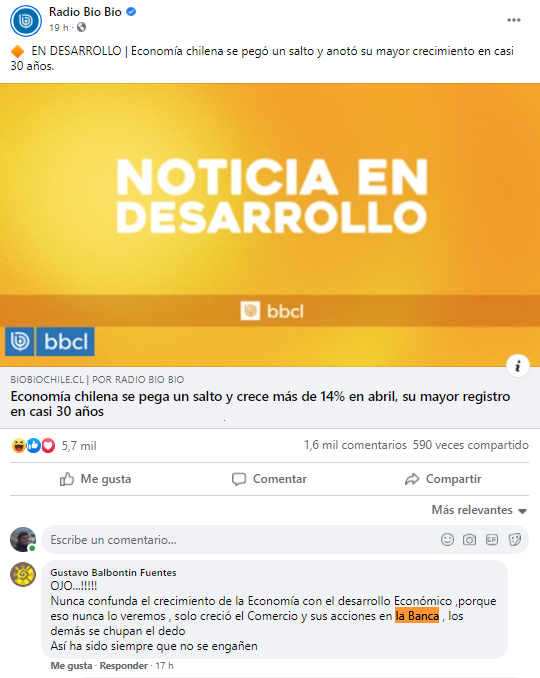 - Se difunde el crecimiento económico en la economía chilena y lo desestiman considerando que tiene que ver con la banca, no con la economía cotidiana.