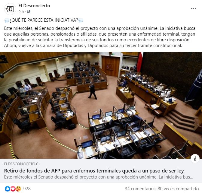 • Se incrementan las menciones de apoyo por el apruebo del retiro a las rentas vitalicias.
