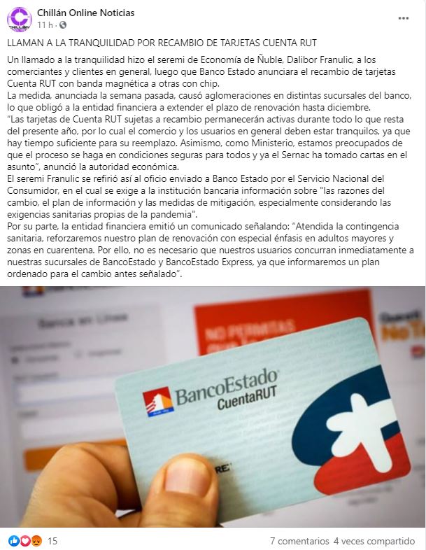 - Se detecta un incremento de mensajes de usuarios que aseguran que sus tarjetas RUT han sido bloqueadas.