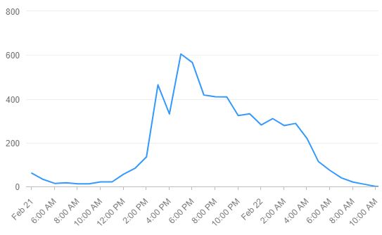 - Los peaks se deben nuevamente a los tweets de apoyo al Tercer Retiro, movilizados por Pamela Jiles.