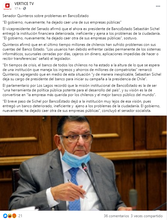 El Gong – SENADOR QUINTEROS SOBRE PROBLEMAS EN BANCOESTADO: “EL GOBIERNO, NUEVAMENTE, HA DEJADO CAER UNA DE SUS EMPRESAS PÚBLICAS”
