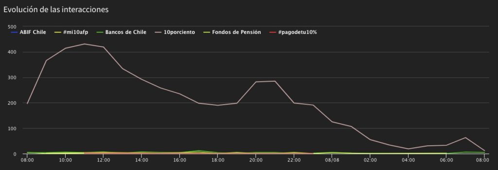 - Baja el volumen de menciones a más de la mitad respecto a las últimas 24 horas sobre el “retiro del 10%” de las AFP.