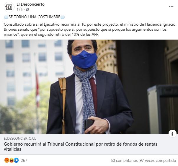 Contenidos en redes sobre el Retiro del 10%