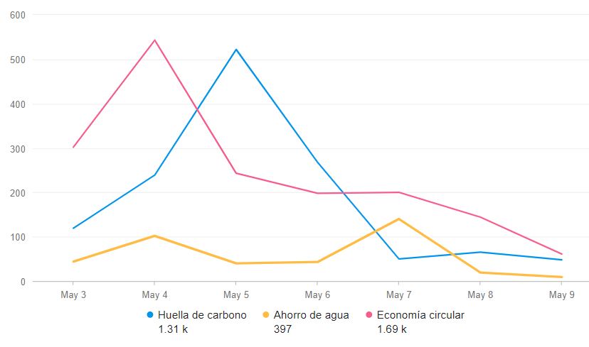 Menciones en redes sociales, medios y blogs en español sobre marcas y empresas vinculadas a la protección, respeto y cuidado del medio ambiente, economía circular o azul, movilidad eléctrica, huella de carbono, y términos afines.