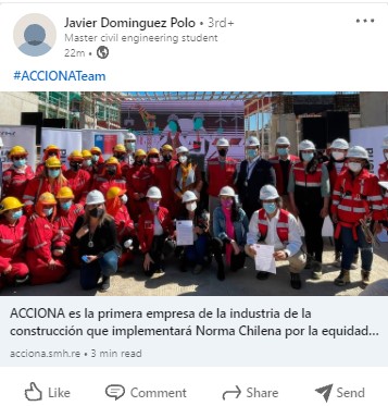 - Acciona Chile primer empresa de la industria de la construcción que implementará la Norma Chilena por la equidad de género.