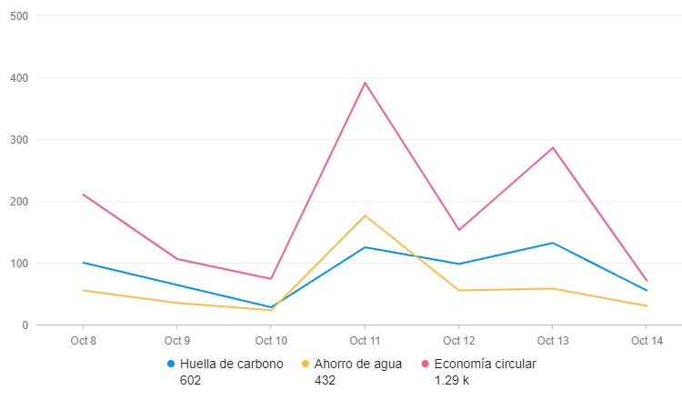 Menciones en redes sociales, medios y blogs en español sobre marcas y empresas vinculadas a la protección, respeto y cuidado del medio ambiente, economía circular o azul, movilidad eléctrica, huella de carbono, y términos afines.