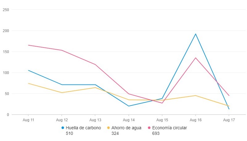 Menciones en redes sociales, medios y blogs en español sobre marcas y empresas vinculadas a la protección, respeto y cuidado del medio ambiente, economía circular o azul, movilidad eléctrica, huella de carbono, y términos afines.