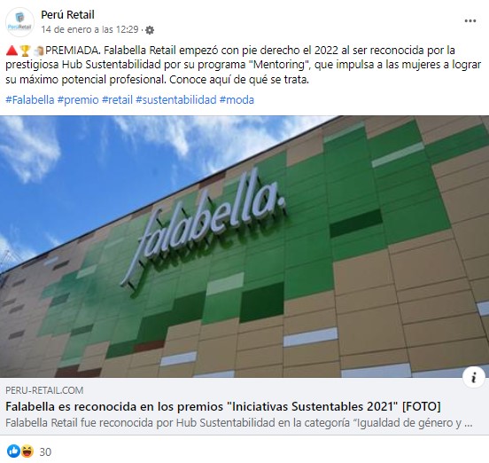 • Falabella Retail es reconocida por su programa “Mentoring”, que impulsa a las mujeres a lograr su máximo potencial profesional.