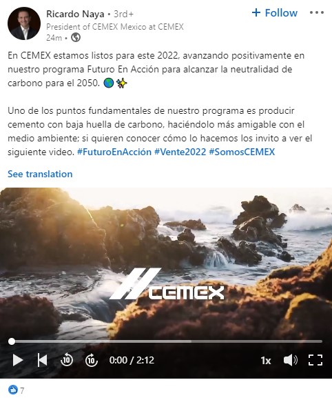 • CEMEX se propone alcanzar la neutralidad de carbono para el 2050.