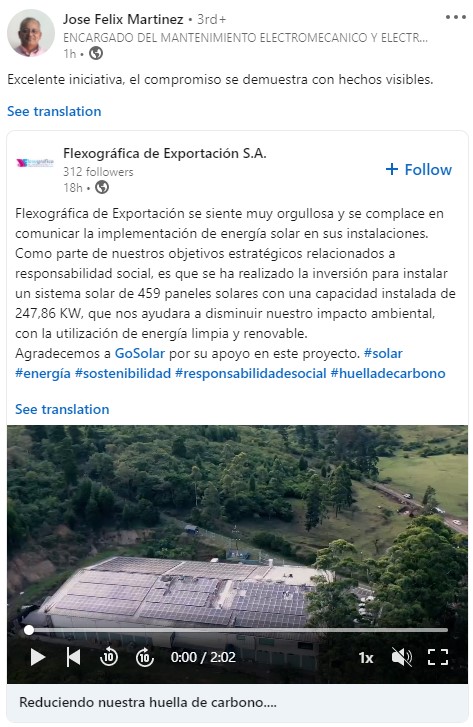 • Flexográfica de exportación S.A Costa Rica implementa energía solar en sus instalaciones para reducir su huella de carbono.
