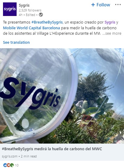 • Sygris medirá la huella de carbono durante el MWC Barcelona 2022.