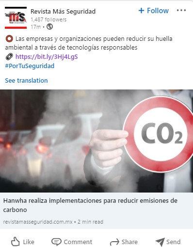 • Hanwha realiza implementaciones para reducir emisiones de carbono.