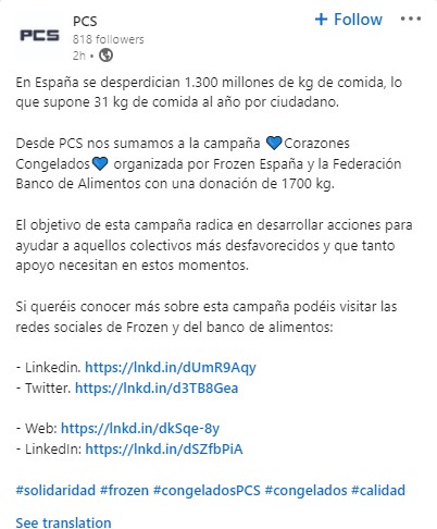 • PCS España dona 1700 kg de alimentos al Banco de Alimentos.