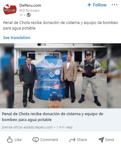 • Oblitas Perú dona un equipo de bombeo de agua al Establecimiento Penitenciario de Chota.