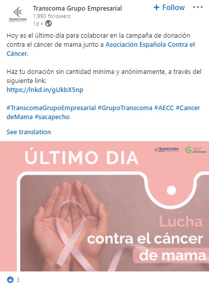 - Transcoma Barcelona da cierre a su campaña de donación para la lucha contra el cáncer de mama.