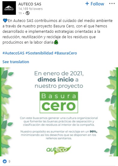 - Auteco Colombia se compromete a reciclar hasta un 90% la basura generada en sus instalaciones.