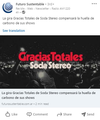 • La gira Gracias Totales de Soda Stereo compensará la huella de carbono de sus shows.