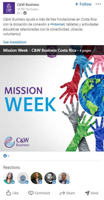 • C&W Business ayuda a más de tres fundaciones en Costa Rica con la donación de conexión a internet y dispositivos electrónicos.