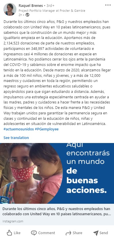 • P&G en los últimos cinco años mediante su programa de voluntariado ha contribuido con 2,134,523 donaciones.