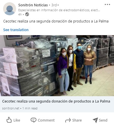 • Cecotec España realiza una segunda donación de productos de amoblamiento a familias afectadas por el volcán de La Palma.