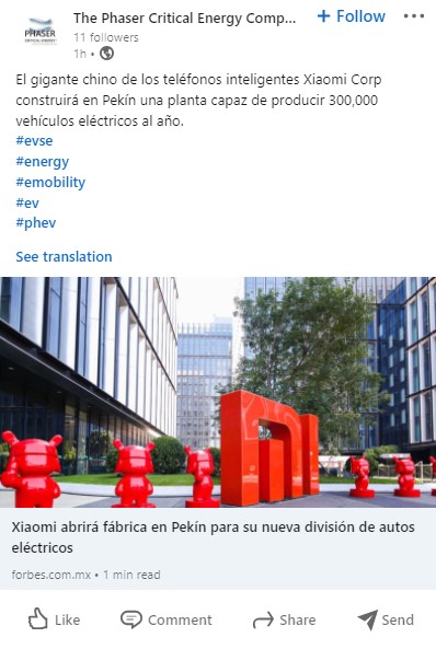 • Xiaomi abrirá fábrica en Pekín para la producción de coches eléctricos.