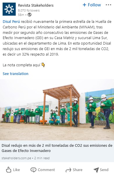• Disal redujo en más de 2.000 toneladas de Co2 sus emisiones de gases de efecto invernadero.