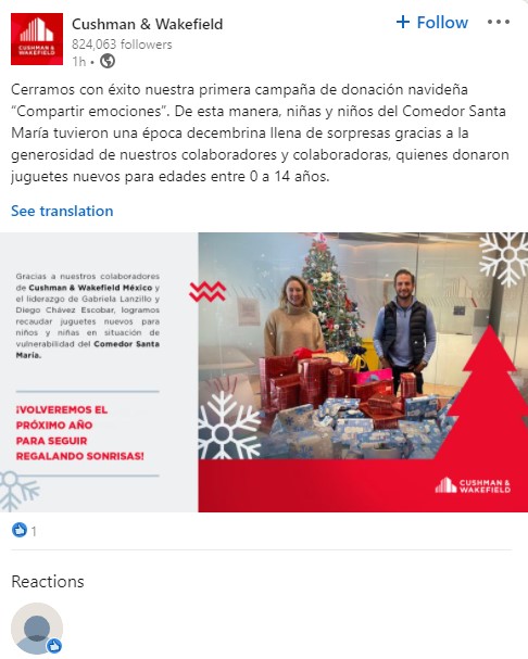 Menciones en redes sociales, medios y blogs en español sobre marcas y empresas vinculadas a voluntariados, desarrollo social, campañas solidarias, inclusión, y términos afines.