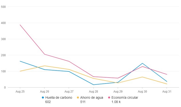 Menciones en redes sociales, medios y blogs en español sobre marcas y empresas vinculadas a la protección, respeto y cuidado del medio ambiente, economía circular o azul, movilidad eléctrica, huella de carbono, y términos afines.