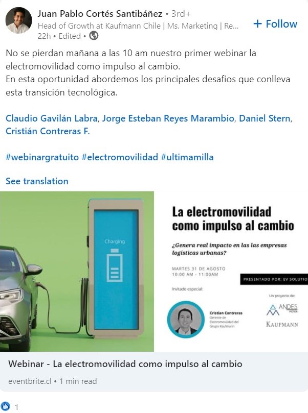 - Kaufmann Chile realiza una charla sobre electromovilidad.