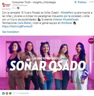 - Sedal Perú lanza la campaña “El nuevo rosado es soñar osado” para inspirar a jóvenes en el establecimiento de sus metas y objetivos.