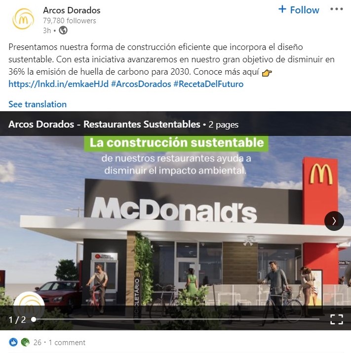 - Arcos Dorados Uruguay presenta construcción sustentable en sus restaurantes para disminuir el impacto ambiental.