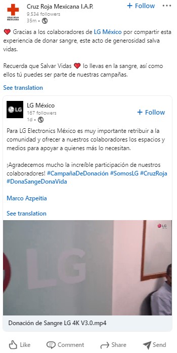 - LG impulsa a sus colaboradores a ser donantes de sangre.