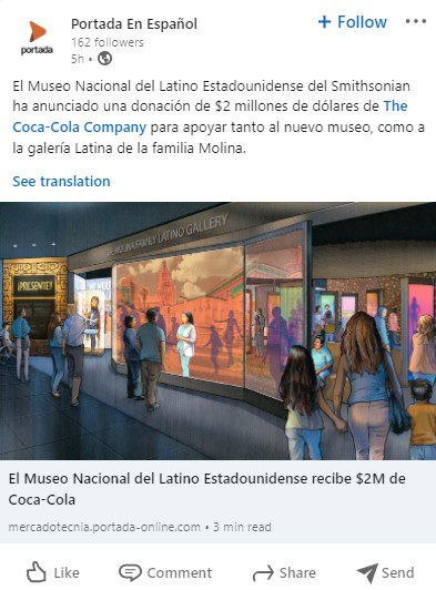 - Coca Cola dona dos millones al Museo Nacional del Latino Estadounidense.
