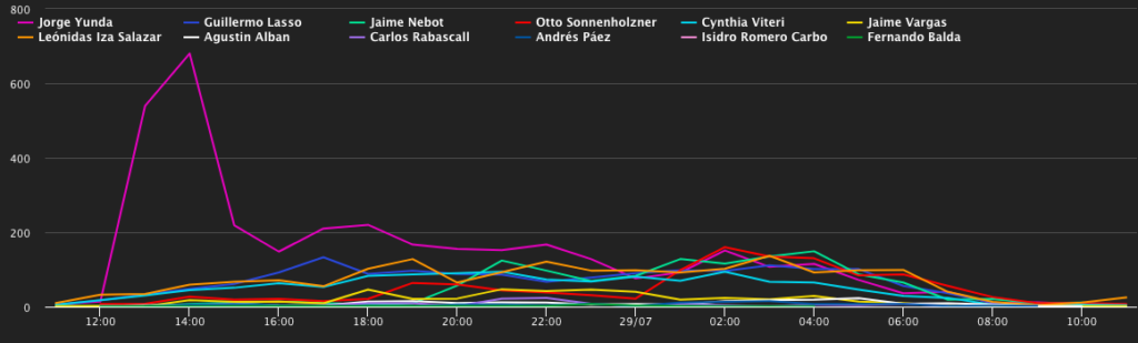 - Jorge Yunda vuelve a destacar con un gran pico de menciones.