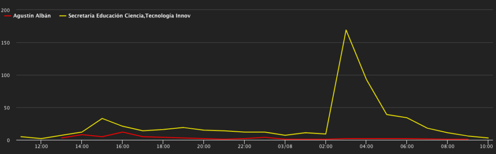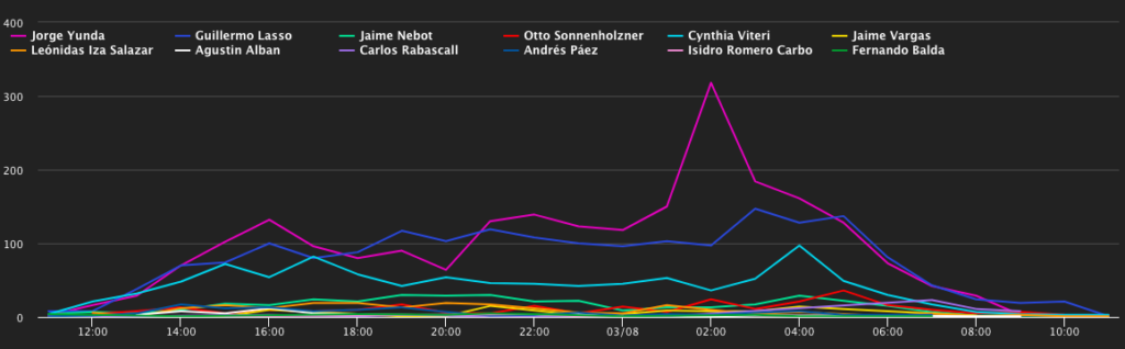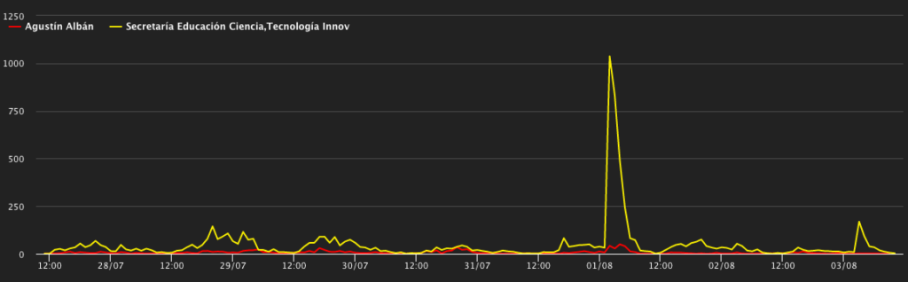 - El pico se debe a las protestas bajo el hashtag #soyposgradistaytengoderechos. Jennifer Cevallos fue la principal impulsora.