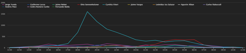 • Gran pico de menciones a Cynthia Viteri.